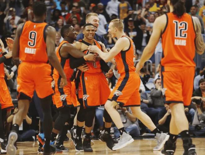 有許多球迷還對(duì)他在賽季最后階段爭(zhēng)奪MVP關(guān)鍵階段的絕殺表現(xiàn)印象深刻,賽季倒數(shù)第三場(chǎng)比賽,雷霆客場(chǎng)對(duì)陣掘金,威少在最后五分鐘砍下15分,終場(chǎng)3秒前,雷霆以103比105落后2分,威少迎著穆雷封蓋完成壓哨絕殺,這場(chǎng)比賽他砍下了50分16籃板10助攻。