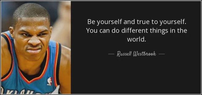 但今天我并不是要討論威少和詹姆斯交惡的新聞,而是對(duì)文中第一件事中的一個(gè)詞深入分析,那就是“be yourself(做自己)?!边@是威少在2016-17賽季奪取MVP后發(fā)表的感言,而自打他加入湖人后,詹姆斯要威少做自己,戴維斯要威少做自己,一直到最近加盟國(guó)王,記者又問威少:“主教練克里斯蒂對(duì)你有什么要求?”威少回答說:“他就讓我做自己”,說完自己都笑了,毫不夸張的說,“做自己”已成為威少身上的重要的梗,那大家心目中的威少“最強(qiáng)自己”又是什么水平呢?