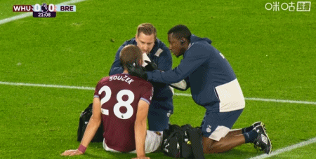 第21分鐘,紹切克爭(zhēng)頂將眼角撞破流血,隊(duì)醫(yī)上場(chǎng)為其治療