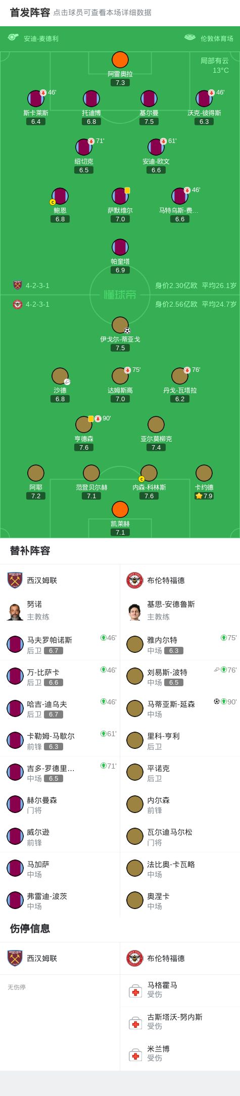 布倫特福德2-0西漢姆聯(lián),伊戈?duì)?蒂亞戈建功,馬蒂亞斯-延森錦上添花